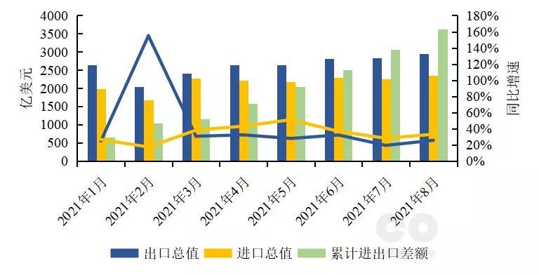 圖3 2021年1-8月我國(guó)進(jìn)出口情況