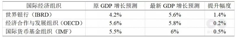 表1 主要國(guó)際經(jīng)濟(jì)組織2021年全球GDP預(yù)測(cè)