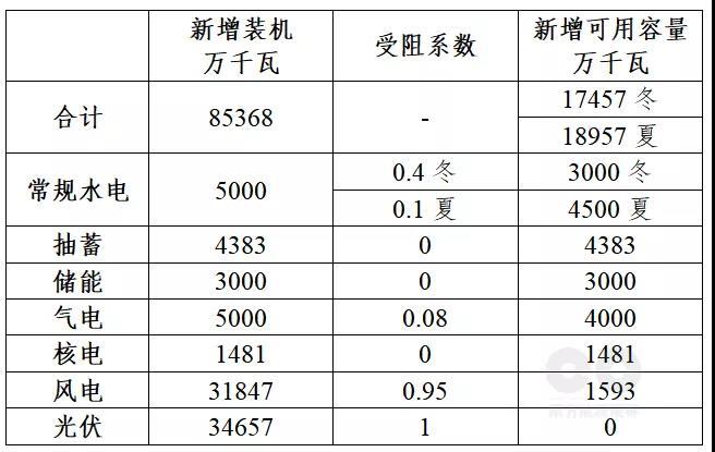 如下表所示,“十四五”新增裝機(jī)約85368萬(wàn)千瓦,考慮到各種電源的受阻后,新增的可用容量?jī)H17457(冬)-18957(夏)萬(wàn)千瓦。