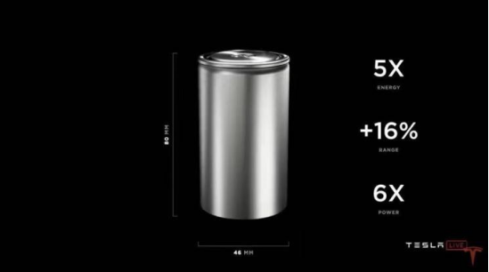 使用新款電芯之后,一臺車上的電池外殼材料將會減少,制造成本上更是會有所降低,每kWh的電池成本降低56%,每kWh所需的投資成本降低69%。并且,不僅成本下降,容量還有所提升,是2170電芯容量上的5倍,同時其輸出功率也提高了6倍,整車?yán)m(xù)航里程也將增加16%。新電池內(nèi)部還采用了無極耳設(shè)計,有助于降低內(nèi)阻,減少發(fā)熱,能耗表現(xiàn)以及充電性能都更加優(yōu)秀。