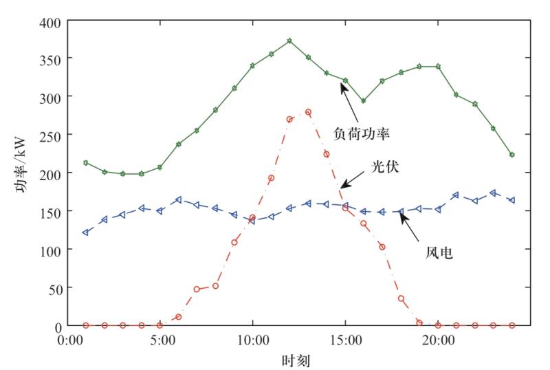 本文采用修改的IEEE-33節(jié)點系統(tǒng)作為微電網(wǎng)算例,其拓撲結構如圖4所示。節(jié)點1連接外部電網(wǎng),RES與負荷的數(shù)據(jù)如圖5所示。采用MATLAB R2014a編寫算法程序,調用Matpower工具箱進行潮流計算。仿真計算機處理器為Intel(R)Core(TM)i5-10210U CPU @ 1.60 GHz,內(nèi)存為8GB。研究中HESS采用鋰電池和超級電容器,系統(tǒng)相關參數(shù)見表1。時間間隔Δt= 1h,T=24。