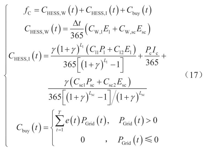 HESS日成本fC包括日運維費用CHESS,W(t)、日投資成本CHESS,I(t)、日購電費用Cbuy(t)。