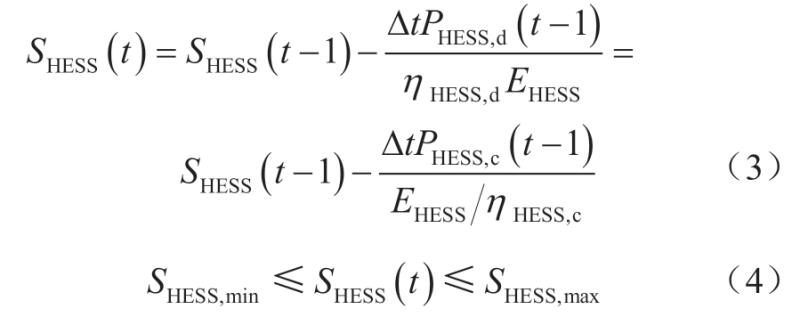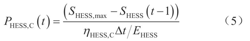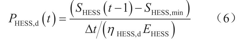反之,SHESS(t)>SHESS,max時,HESS限制充電,此時儲能實際放電功率為