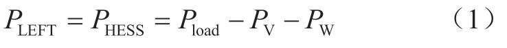 HESS的功率控制策略利用低通濾波算法[20]將動態(tài)需求功率分解為低頻部分和高頻部分,實現(xiàn)能量和功率的結合。微電網(wǎng)的功率缺額PLEFT為