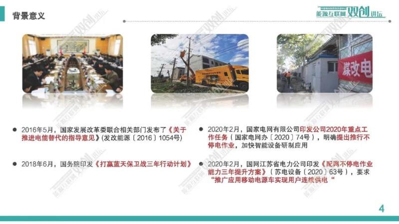 在"30.60"雙碳目標(biāo)背景下,電力儲能作為高比例可再生能源接入電網(wǎng)及消納的關(guān)鍵支撐技術(shù),地位十分重要。本課程重點(diǎn)介紹了移動式儲能供電系統(tǒng)面向終端用戶的電能清潔替代要求,分析了移動儲能實(shí)現(xiàn)電網(wǎng)清潔保供電、不停電作業(yè)、臺區(qū)增容等的保障作用。針對移動式儲能供電系統(tǒng),從關(guān)鍵技術(shù)、裝備研制和工程應(yīng)用等方面介紹移動供電電源車、移動供電方艙技術(shù)及產(chǎn)品推廣情況,探討終端電能替代的未來發(fā)展趨勢及關(guān)鍵問題。