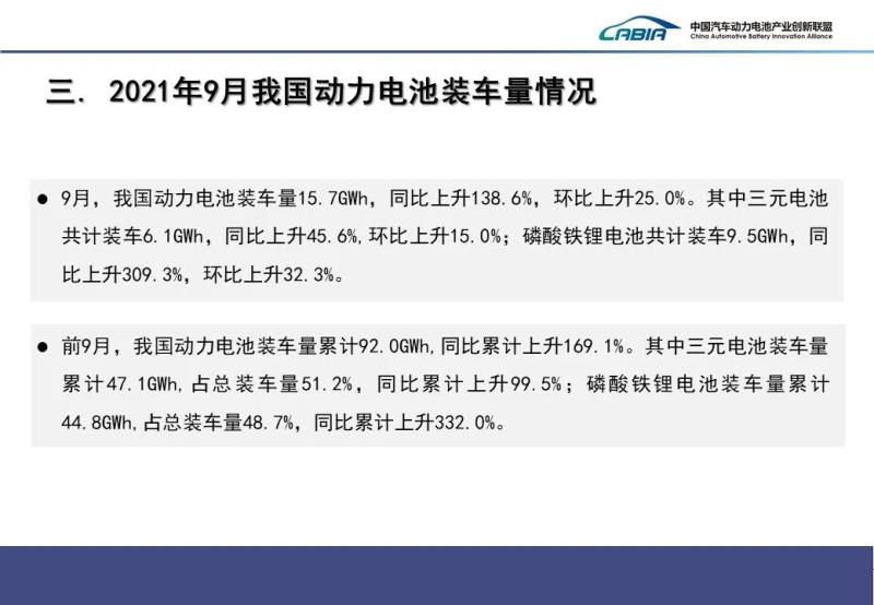 2021年10月12日,中國(guó)汽車工業(yè)協(xié)會(huì)10月數(shù)據(jù)發(fā)布會(huì)在京召開(kāi),中國(guó)汽車動(dòng)力電池產(chǎn)業(yè)創(chuàng)新聯(lián)盟發(fā)布2021年9月份動(dòng)力電池月度數(shù)據(jù)。
