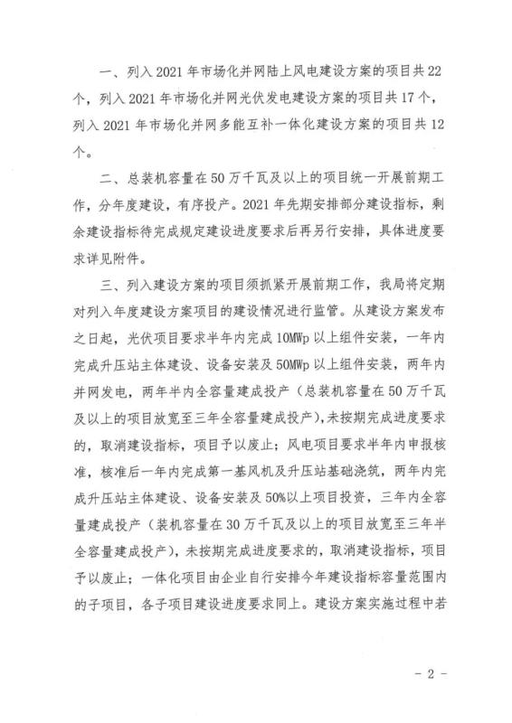 根據(jù)《通知》,列入2021年市場(chǎng)化并網(wǎng)陸上風(fēng)電建設(shè)方案的項(xiàng)目共22個(gè),總規(guī)模325.1萬(wàn)千瓦。2021年安排325.1萬(wàn)千瓦,配儲(chǔ)能650MW/1300MWh;
