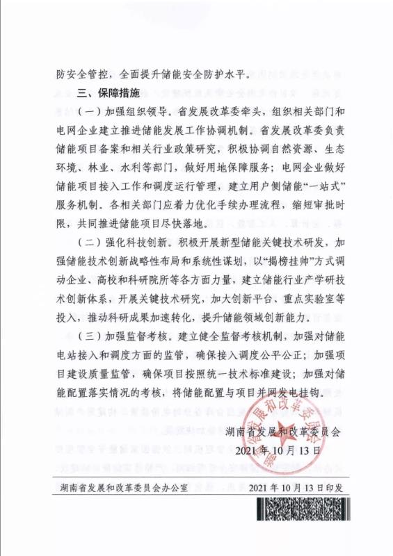 中國儲能網(wǎng)訊:10月13日,湖南省發(fā)改委發(fā)布了《關于加快推動湖南省電化學儲能發(fā)展的實施意見》。
