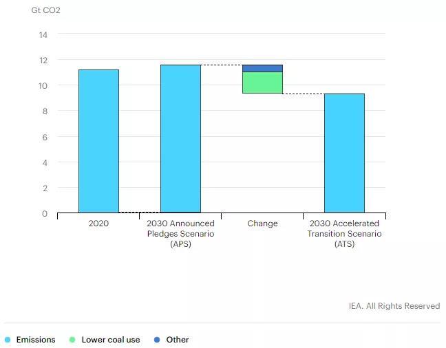 從現(xiàn)在到2030年,更快的清潔能源轉(zhuǎn)型可以使現(xiàn)有資產(chǎn)及其利益相關(guān)者更容易適應(yīng)這一進(jìn)程。加速轉(zhuǎn)型情景(ATS)避免了在2060年承諾目標(biāo)情景(APS)中約200億噸的“鎖定”排放。這些排放來自于2030年之前的電力和工業(yè)部門投建的長壽命資產(chǎn)。這一早期行動意味著,在2030年至2060年間,達(dá)到碳中和所需的年均減排速度比承諾目標(biāo)情景(APS)低大約20%,為市場調(diào)整、企業(yè)及消費(fèi)者適應(yīng)新情況留下更多時間。