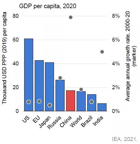 中國的能源體系體現(xiàn)了幾十年來在追求其他能源政策目標(biāo)的同時,為使數(shù)億人脫貧所做的努力。自2005年以來,中國的能源消耗翻了一番,但同期國內(nèi)GDP能源強(qiáng)度大幅下降。燃煤發(fā)電約占中國發(fā)電總量的60%,且還在繼續(xù)建設(shè)新的燃煤電廠,但新增太陽能光伏發(fā)電裝機(jī)總量已超過世界上其他任何國家。中國是全球第二大石油消費(fèi)國,但也擁有占全球70%的電動汽車電池產(chǎn)能,僅江蘇省一省的產(chǎn)能就占到全國的三分之一。中國對低碳技術(shù)的貢獻(xiàn),尤其在太陽能光伏領(lǐng)域,主要由政府日益宏大的五年計劃推動。其所帶來的成本下降,改變了世界對清潔能源未來的看法。如果全世界要實(shí)現(xiàn)氣候目標(biāo),就需在清潔能源領(lǐng)域取得更大規(guī)模的進(jìn)步,并涉及所有行業(yè)部門。例如,中國的鋼鐵和水泥產(chǎn)量超過世界的一半,僅河北省一省就占2020年全球鋼鐵產(chǎn)量的13%。中國的鋼鐵、水泥和化工行業(yè)的排放量比歐盟及英國的二氧化碳排放總量還要高。