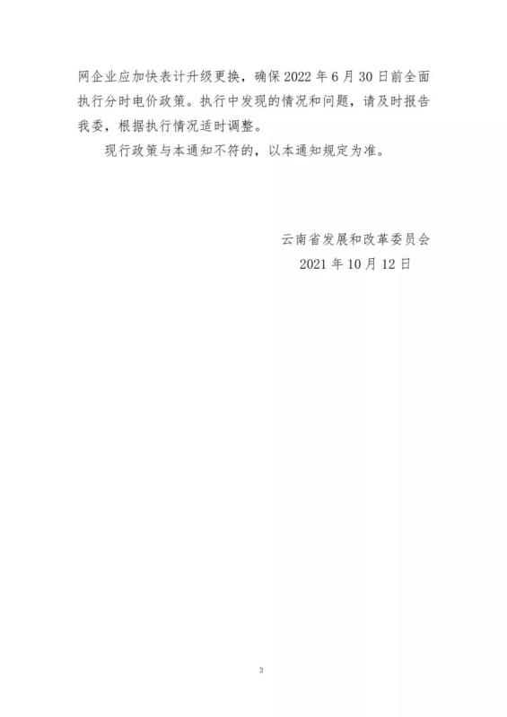 此外,本通知自2022年1月1日起執(zhí)行。用戶(hù)表計(jì)暫不具備峰谷、尖峰分時(shí)計(jì)量條件的,暫按基準(zhǔn)電價(jià)執(zhí)行,電網(wǎng)企業(yè)應(yīng)加快表計(jì)升級(jí)更換,確保2022年6月30日前全面執(zhí)行分時(shí)電價(jià)政策。