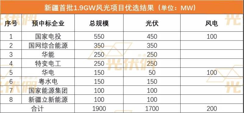 截止目前,新疆已經(jīng)啟動了1.9GW風電、光伏項目優(yōu)選,涉及10地區(qū),其中光伏1.7GW、風電200MW。從業(yè)主來看,國家電投、國網(wǎng)綜合能源、華能、特變電工領銜新疆首批風、光優(yōu)先名單。值得注意的是,特變電工是此次唯一上榜的民營光伏企業(yè),其余投資企業(yè)均為國有企業(yè)。