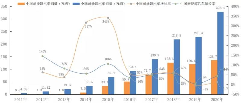 圖 全球及中國新能源汽車銷量和增長率圖