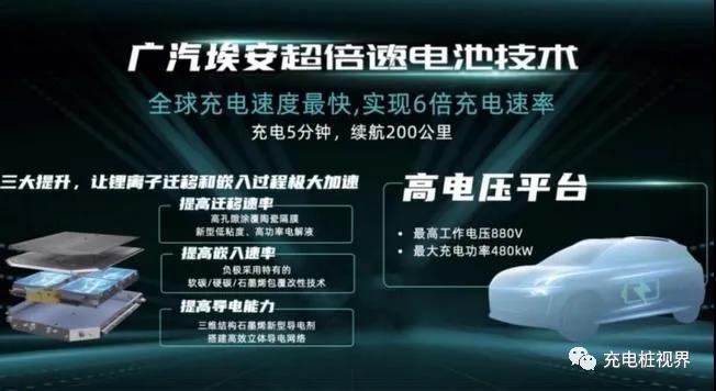 8月30日,廣汽埃安正式對外發(fā)布了能夠?qū)崿F(xiàn)“充電5分鐘,續(xù)航200公里”的超倍速電池技術(shù)和全球充電功率最高的A480超充樁(圖片由廣汽埃安提供)