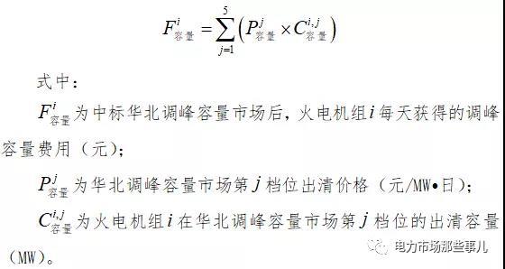 《華北電力調(diào)峰容量市場(chǎng)運(yùn)營(yíng)規(guī)則(暫行)》則是按容量給予火電調(diào)峰機(jī)組回報(bào),華北調(diào)峰容量市場(chǎng)按季度開(kāi)展。火電機(jī)組只要中標(biāo),就可以每天獲取調(diào)峰容量費(fèi)用,具體公式為:
