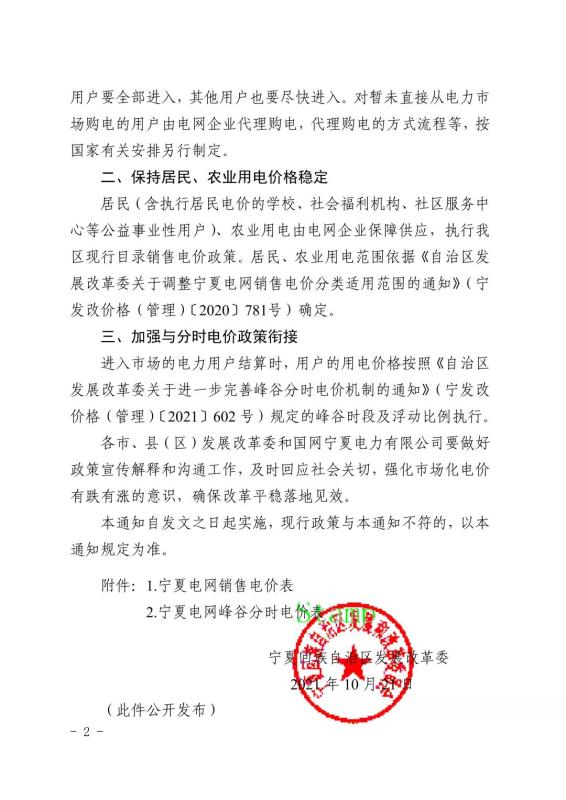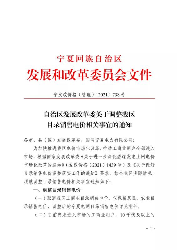 寧夏:關(guān)于調(diào)整我區(qū)目錄銷售電價相關(guān)事宜的通知