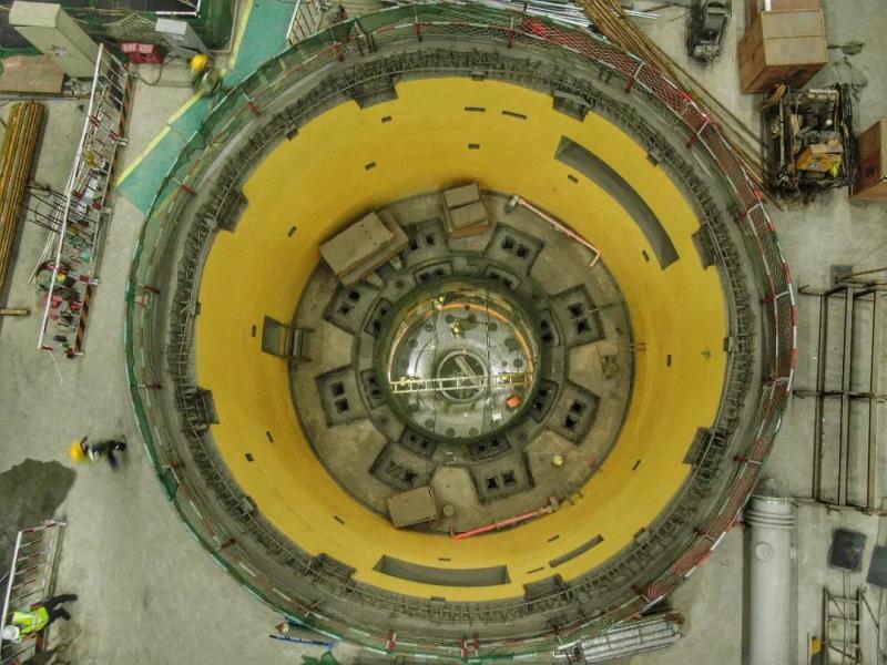 陽江抽水蓄能電站一期容量為120萬千瓦。截至10月21日,項(xiàng)目總體進(jìn)展86%,電站計(jì)劃于2021年底首臺機(jī)組投產(chǎn),2022年3月臺機(jī)組全部投產(chǎn)。圖為施工人員正在進(jìn)行發(fā)電機(jī)大軸吊裝作業(yè)。(南網(wǎng)傳媒全媒體記者 李志杰 通訊員 丁卯 楊惠平 陳海東 攝)