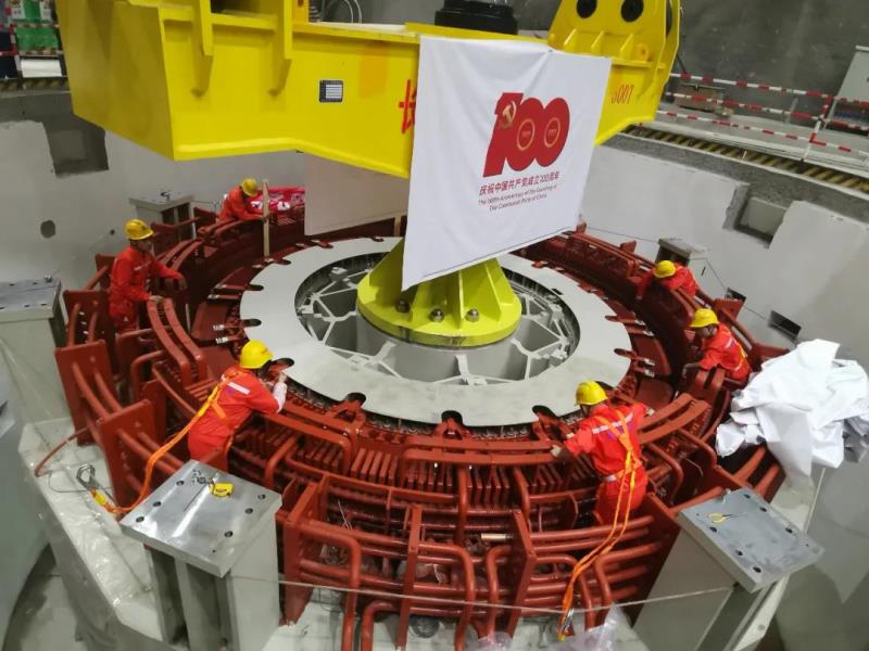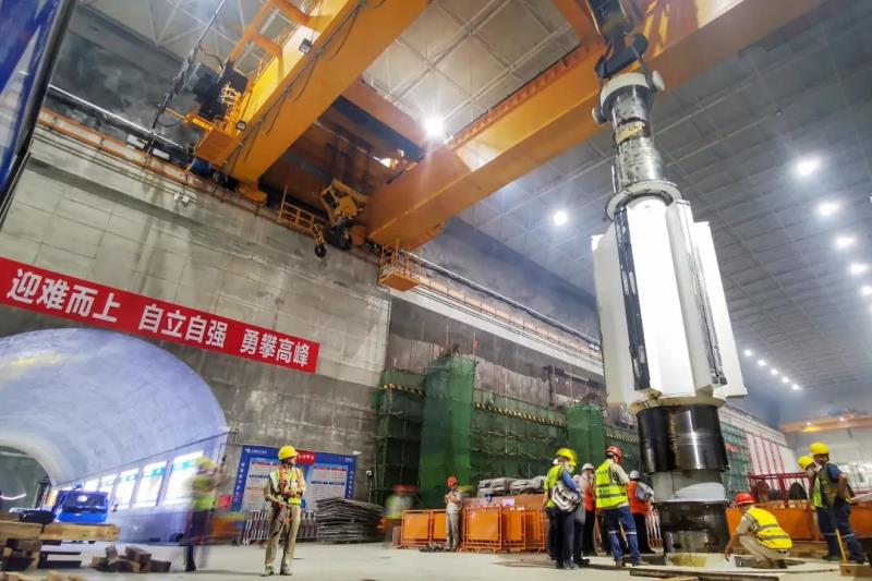 梅州抽水蓄能電站裝機(jī)容量120萬千瓦,預(yù)計(jì)首臺機(jī)組將提前至今年底投產(chǎn),將大幅提升粵港澳大灣區(qū)電網(wǎng)調(diào)節(jié)能力,緩解高峰時(shí)段用電緊張問題。圖為梅州抽水蓄能電站首臺機(jī)轉(zhuǎn)子于6月29日順利吊裝就位。(陳泓宇 攝)