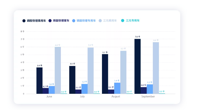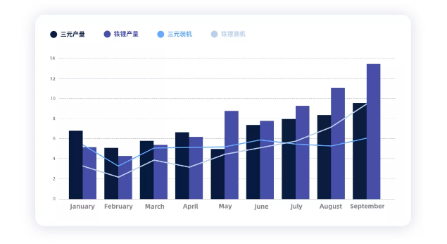▲ 6-9月份不同類型電池的裝機(jī)情況