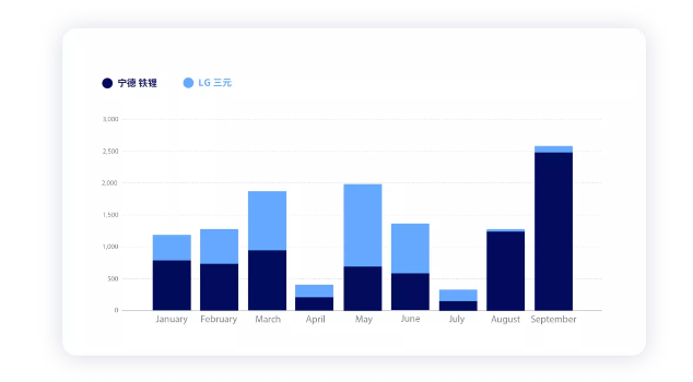 如果我們進(jìn)一步分拆來看,在比亞迪轉(zhuǎn)向刀片電池、乘用車狂推磷酸鐵鋰以后,寧德時代的跟進(jìn)速度也是有目共睹——依靠特斯拉帶動起很大的量。