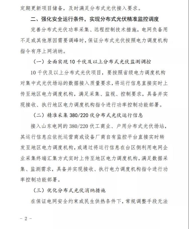 文件提出,完善分布式光伏功率采集、遠(yuǎn)程控制技術(shù)措施,電網(wǎng)負(fù)備用不足或其他原因需要調(diào)峰時(shí),保證分布式光伏按照電力調(diào)度機(jī)構(gòu)指令有序上網(wǎng)消納。