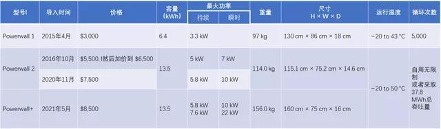 表1 Power Wall的基本參數(shù)和價格