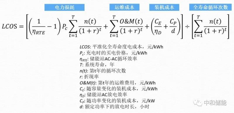 因此,為了找到更科學(xué)的度電成本計(jì)算方法,以幫助市場對(duì)不同的儲(chǔ)能技術(shù)進(jìn)行比較,我們查閱分析了不少文獻(xiàn)資料。在找到的眾多計(jì)算方法中,美國能源部在招標(biāo)儲(chǔ)能技術(shù)項(xiàng)目時(shí)推出的一個(gè)平準(zhǔn)化全壽命度電成本公式是一個(gè)考慮得比較全面的方法,于是我們借用這個(gè)公式來進(jìn)行度電成本的計(jì)算,以幫助大家能更好地考察不同技術(shù)的各種隱藏成本。