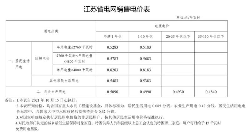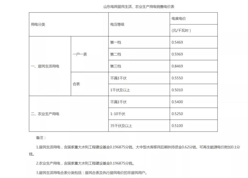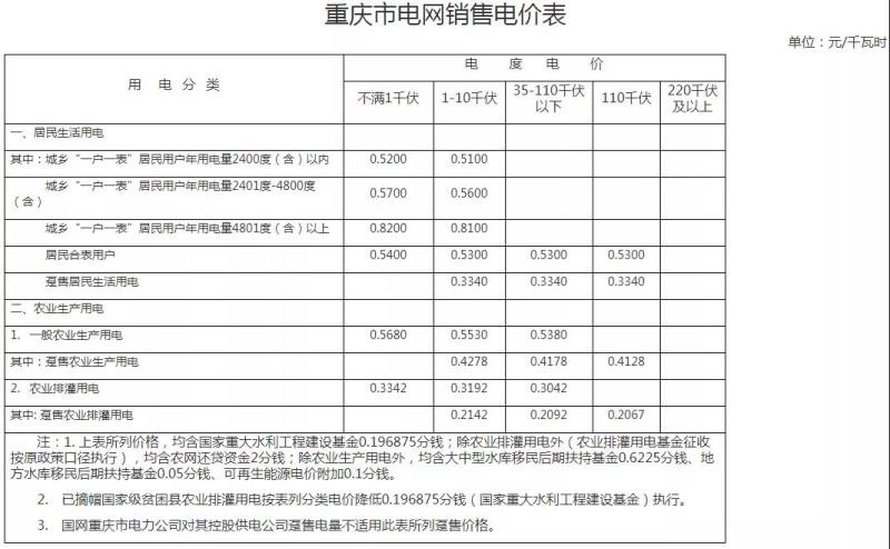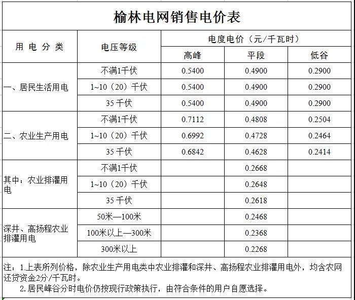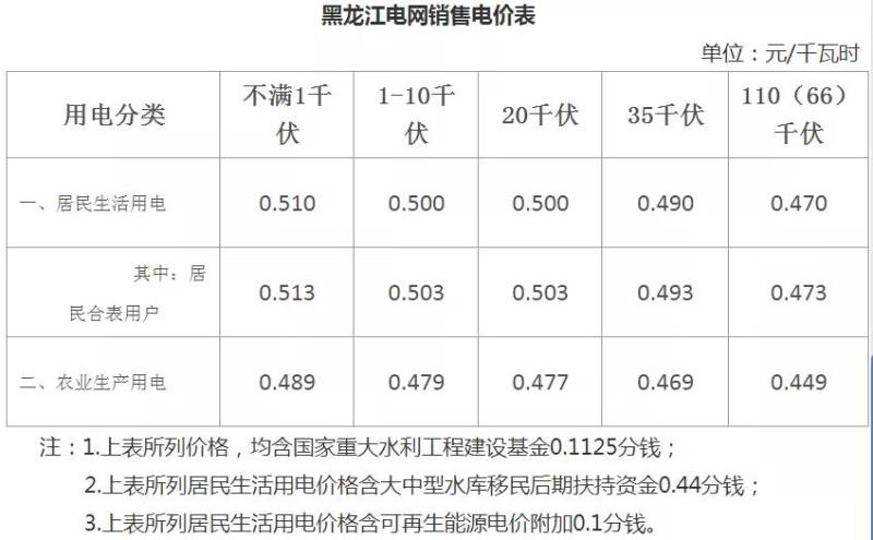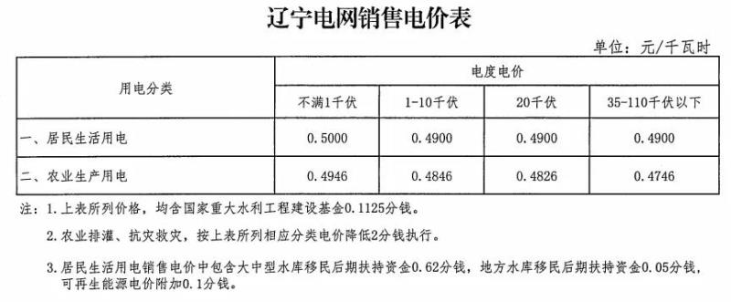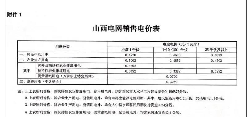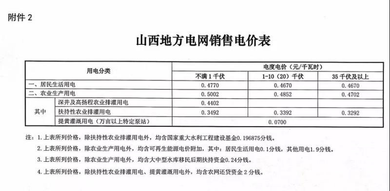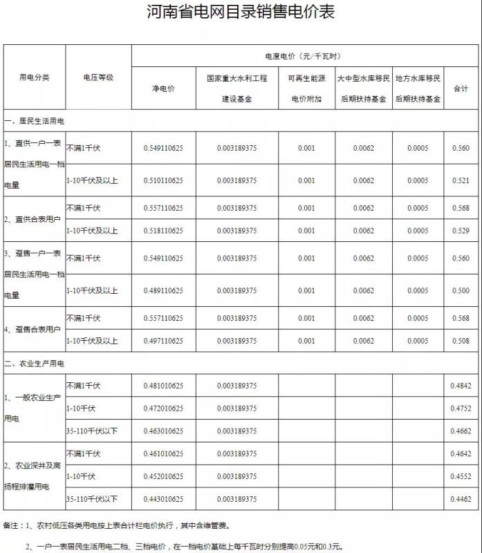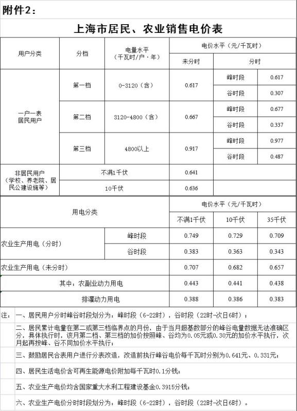 2.上表所列價格,除農(nóng)業(yè)生產(chǎn)用電外,均含大中型水庫移民后期扶持資金0.23分錢、可再生能源電價附加0.1分錢。