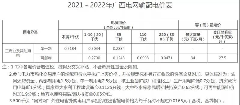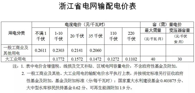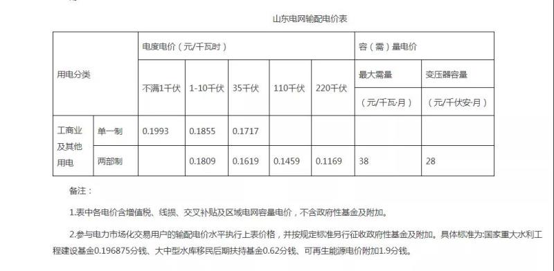注:1、表中各電價含增值稅、線損、交叉補貼及區(qū)域電網(wǎng)容量電價,不含政府性基金及附加。