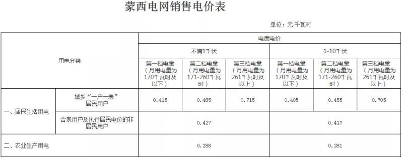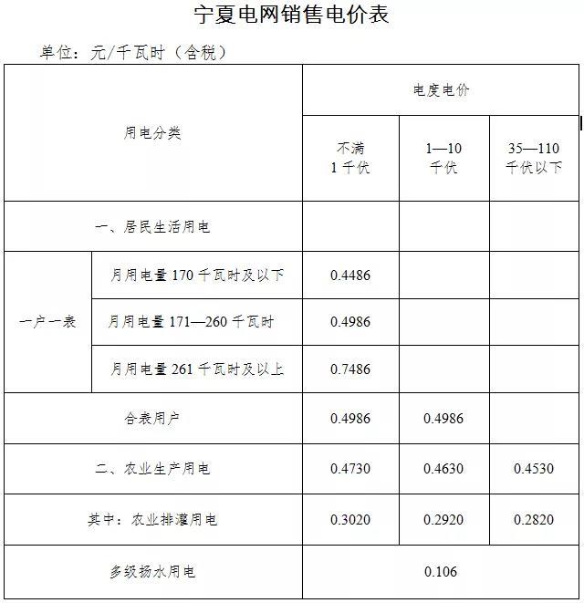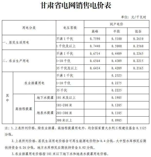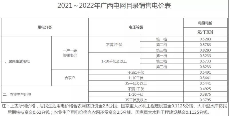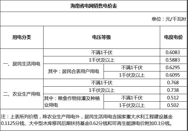 注:上表所列價格,居民生活用電和農(nóng)業(yè)生產(chǎn)用電價格含國家重大水利工程建設(shè)基金0.1125分錢,居民生活用電價格含大中型水庫移民后期扶持基金0.12分錢。