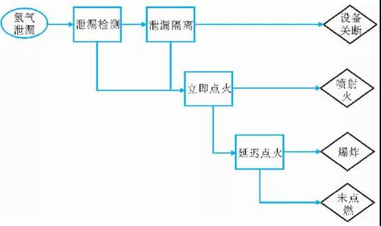 a)依據(jù)加氫站事故樹,氫氣泄漏事故場景分為噴射火、爆炸和僅泄漏3大類,基于選定的典型泄漏尺寸,計(jì)算泄漏量,進(jìn)而得到點(diǎn)火概率,最終推算出不同事故場景的發(fā)生概率。