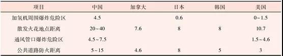 b)我國標(biāo)準(zhǔn)中對加氫站安全間距的要求明顯大于國外,部分指標(biāo)是國外對應(yīng)指標(biāo)的幾倍甚至十倍。