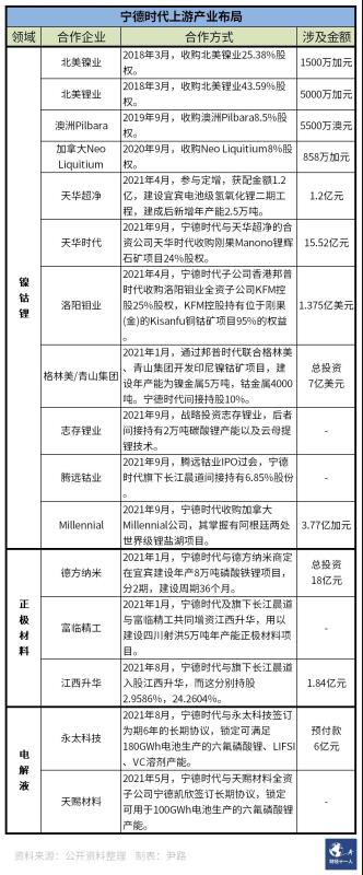 在上游供應(yīng)鏈的布局方面,寧德時(shí)代并不追求絕對(duì)控股,而是力求在更廣泛的領(lǐng)域建立影響力。