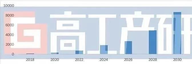 在綠氫發(fā)展呼聲高漲背景下,電解水制氫正迎來新一輪發(fā)展機遇。據(jù)高工產(chǎn)研氫電研究所(GGII)統(tǒng)計顯示,2020年中國新投資制氫項目約23個。其中電解水制氫項目7個,占比30%。在“雙碳”目標(biāo)下,GGII預(yù)測電解水制氫規(guī)模在未來幾年將呈快速上漲趨勢: