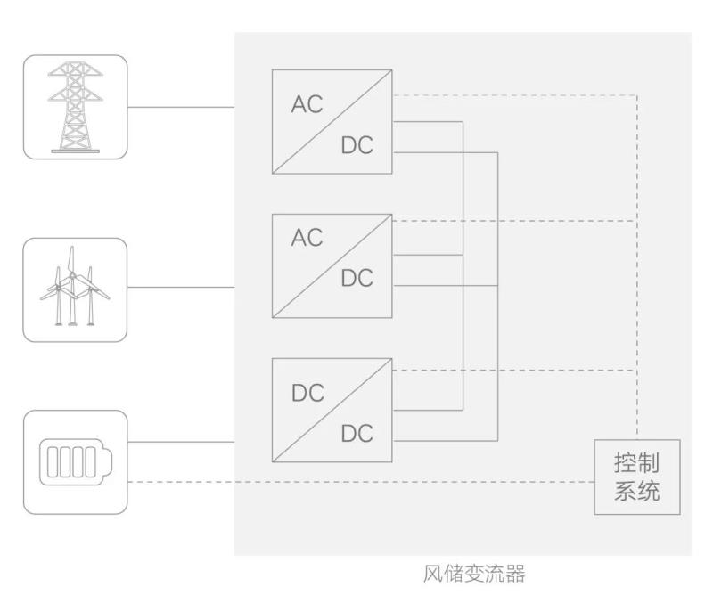 2021年CWP國(guó)際風(fēng)能展中,陽(yáng)光電源發(fā)布風(fēng)儲(chǔ)一體變流器,該變流器由6.6MW雙饋風(fēng)電變流器直流側(cè)配比10%功率的儲(chǔ)能變流單元,通過(guò)風(fēng)電變流與儲(chǔ)能變換一體化控制,深度融合風(fēng)電變流與儲(chǔ)能功能的場(chǎng)景化應(yīng)用。
