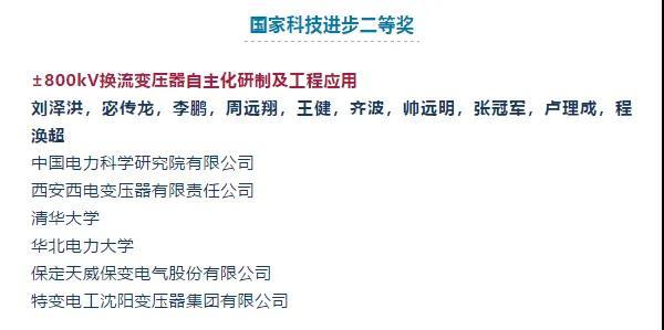 11月3日,2020年度國(guó)家科學(xué)技術(shù)獎(jiǎng)勵(lì)大會(huì)在北京舉行。特變電工參與建設(shè)的“±800kV直流換流變壓器自主化研制及工程應(yīng)用”項(xiàng)目被授予2020年度國(guó)家科學(xué)技術(shù)進(jìn)步獎(jiǎng)二等獎(jiǎng)。至此,公司榮獲國(guó)家科學(xué)技術(shù)進(jìn)步特等獎(jiǎng)2項(xiàng)、一等獎(jiǎng)4項(xiàng)、二等獎(jiǎng)3項(xiàng)。