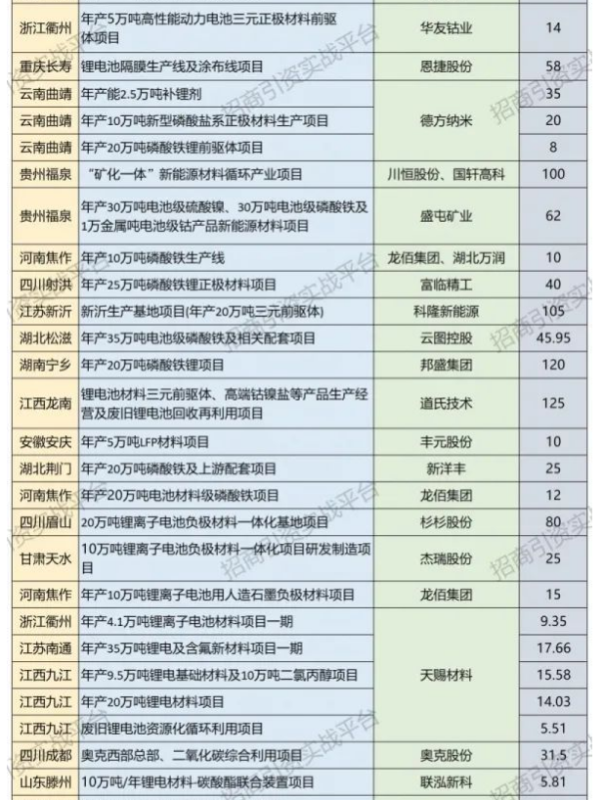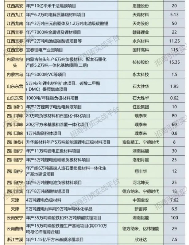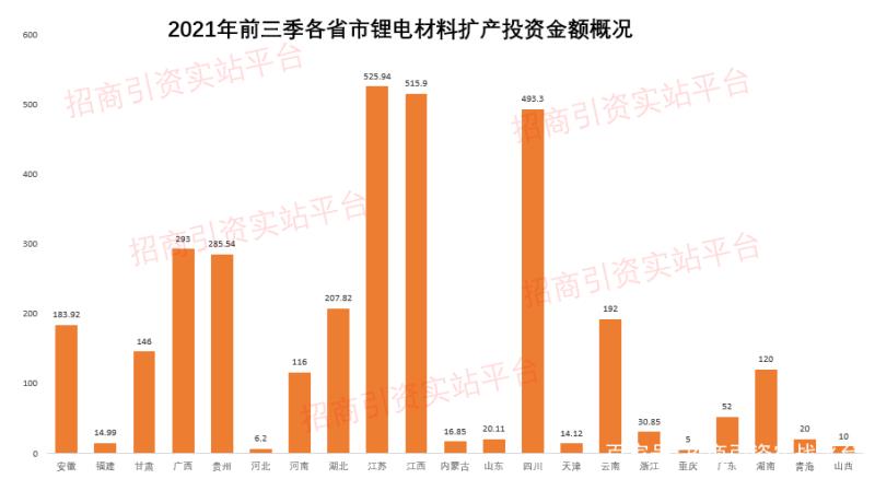 鋰電材料擴產(chǎn)分布21省 總投資金額超3千億元
