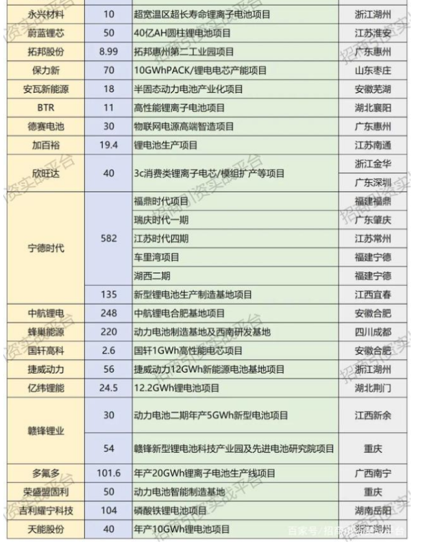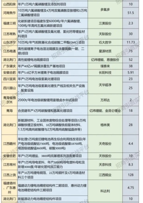 附:2021年全國鋰電池、鋰電材料擴產(chǎn)項目表