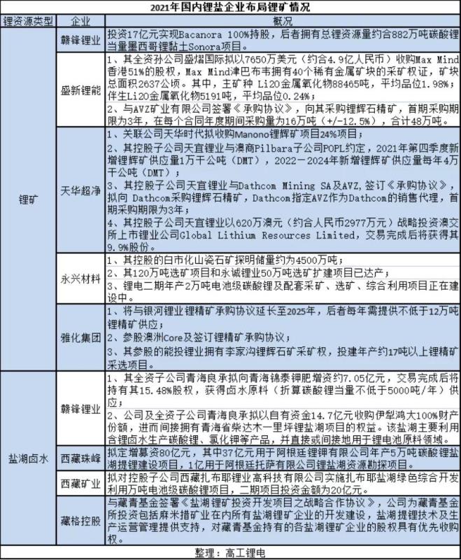 同時(shí),可以預(yù)見,在未來,將有越來越多的企業(yè)意識(shí)到上游原材料保障的重要性和迫切性,會(huì)有更多的企業(yè)參與到鋰資源的卡位戰(zhàn)中。