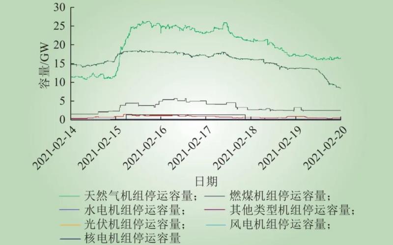 圖7 2月14日—20日得州各類型機組被迫停運容量變化