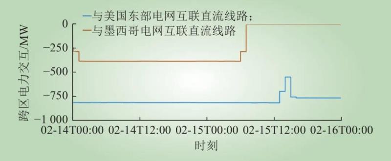 圖6 2月14日—16日得州與周邊電網電力交互情況