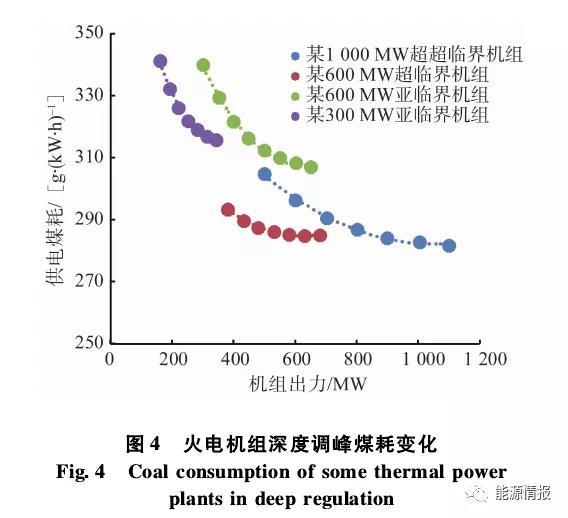 其次,靈活性改造的目標(biāo)是開展深度調(diào)峰。因此,深度調(diào)峰成本是潛在的可變成本,包括增加的燃料成本、廠用電、設(shè)備運(yùn)行維護(hù)成本及由于長時(shí)間深度調(diào)峰和大范圍負(fù)荷率變動引起的設(shè)備壽命減損、加速更換成本等。其中,隨著調(diào)峰深度的增加,火電機(jī)組的供電煤耗將明顯增加,特別是進(jìn)入深度調(diào)峰區(qū)間后,供電煤耗增速進(jìn)一步加快,如圖4所示。同時(shí),也可以看出,火電機(jī)組由于設(shè)計(jì)參數(shù)、技術(shù)流派、定態(tài)選擇等方面的差異,深度調(diào)峰帶來的供電煤耗增量也有所不同。