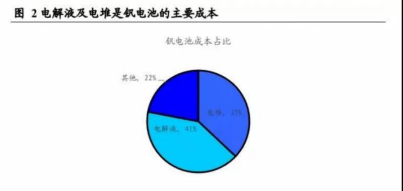 電堆成本的下降已逐步展開。釩電池的成本主要來自于電堆和電解液,以10kW/40kWh釩電池儲能系統(tǒng)為例,假設(shè)釩電池儲能系統(tǒng)綜合成本為4500元/KWh,釩電解液成本占總成本的41%(1845元/kwh),電堆成本占比37%(1665元/kwh),其余為建安等成本。釩電解液主要成本為五氧化二釩,電解液成本主要受到釩價(jià)的影響,而電堆的成本主要來自于隔膜等材料。目前,電堆成本的下降已經(jīng)逐步展開:大連化物所通過開發(fā)可焊接多孔離子傳導(dǎo)膜,使得電堆膜材料的使用面積下降30%、電堆的總成本下降40%,假設(shè)電解液的成本不變,目前釩電池成本下沿已下降至2844元/kwh??赡茴A(yù)見,隨著技術(shù)的進(jìn)步,釩電池電堆成本仍將持續(xù)下降。