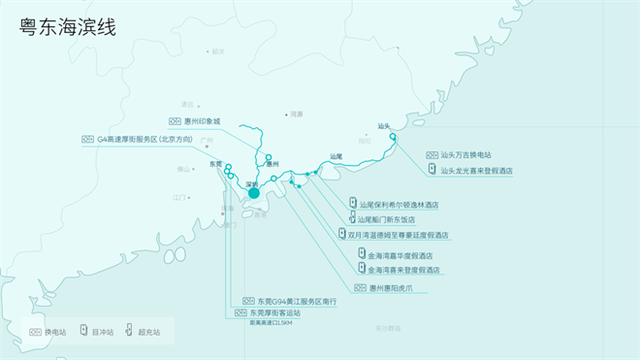 據(jù)悉,粵東海濱線充換電網(wǎng)絡(luò)覆蓋惠州金海灣、雙月灣、汕尾保利金町灣等濱海旅游度假區(qū),可滿足用戶自駕時(shí)的加電需求。