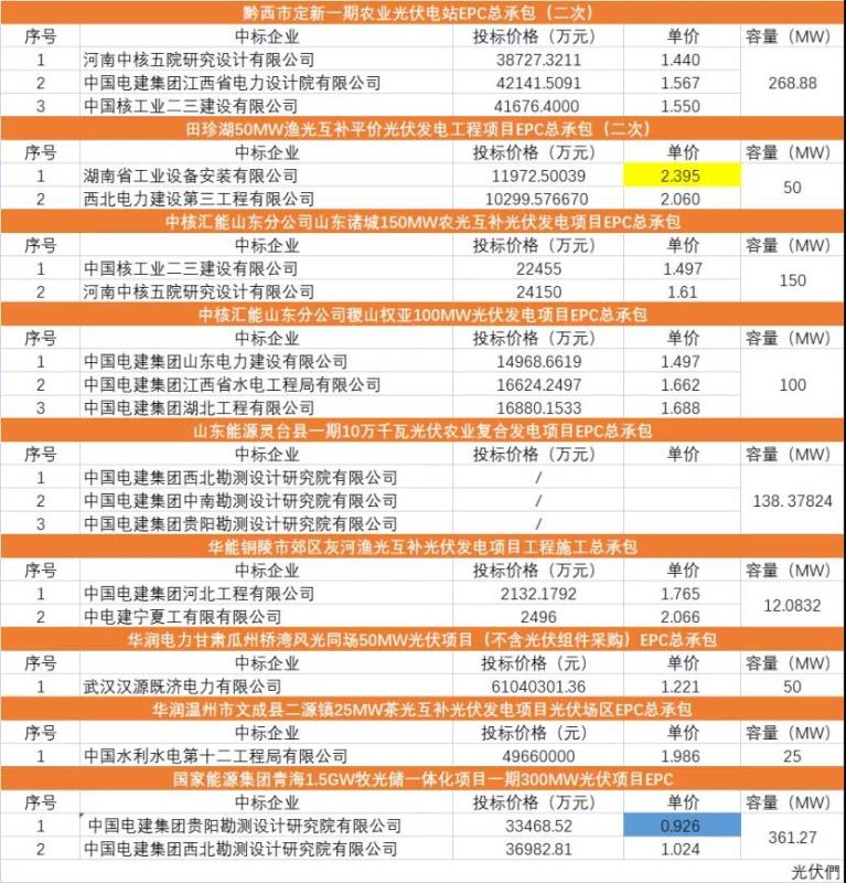 根據(jù)招標(biāo)公告來看,這些EPC項目均為不含組件、逆變器等關(guān)鍵設(shè)備的小EPC項目。從報價來看,主要集中在0.926元/W-2.395元/W之間。最高價與最低價相差1.469元每瓦。