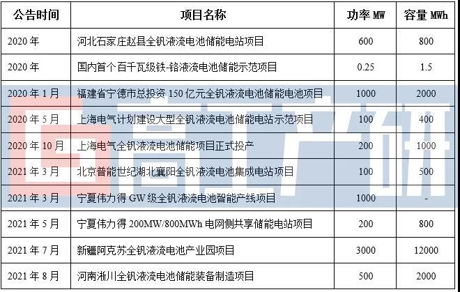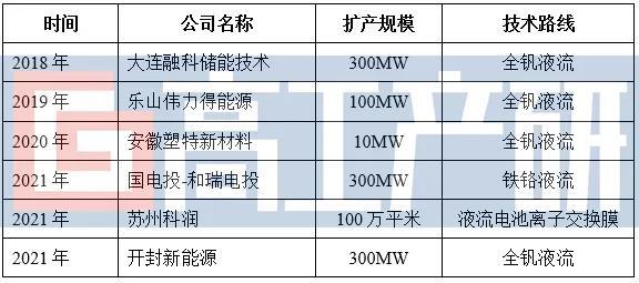 2021年國內(nèi)主要液流電池產(chǎn)業(yè)鏈擴(kuò)產(chǎn)項(xiàng)目(部分)