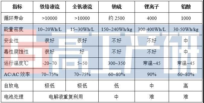 液流電池與其他電化學(xué)電池技術(shù)對比