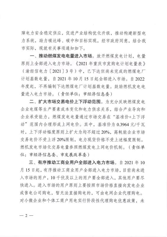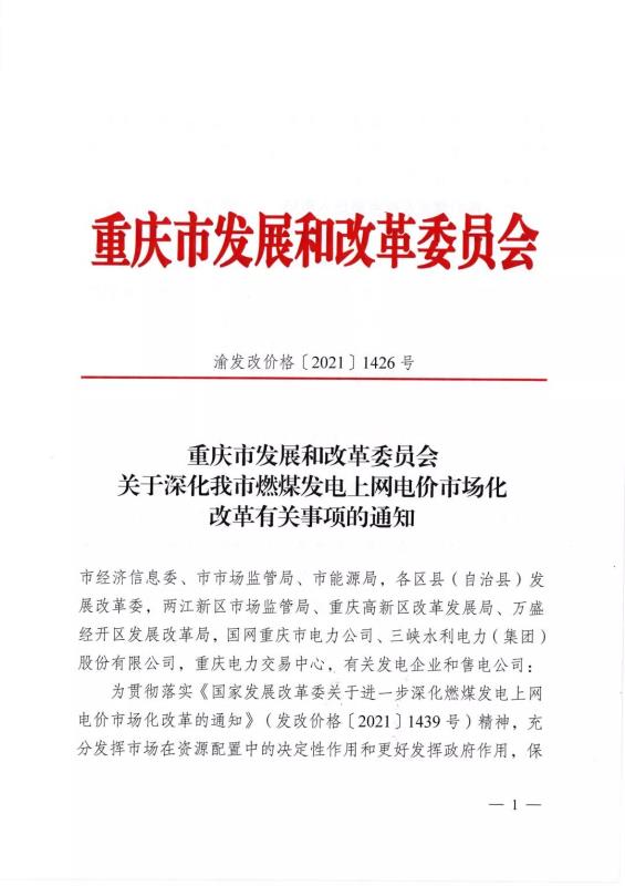 重慶:深化燃煤發(fā)電上網電價市場化改革
