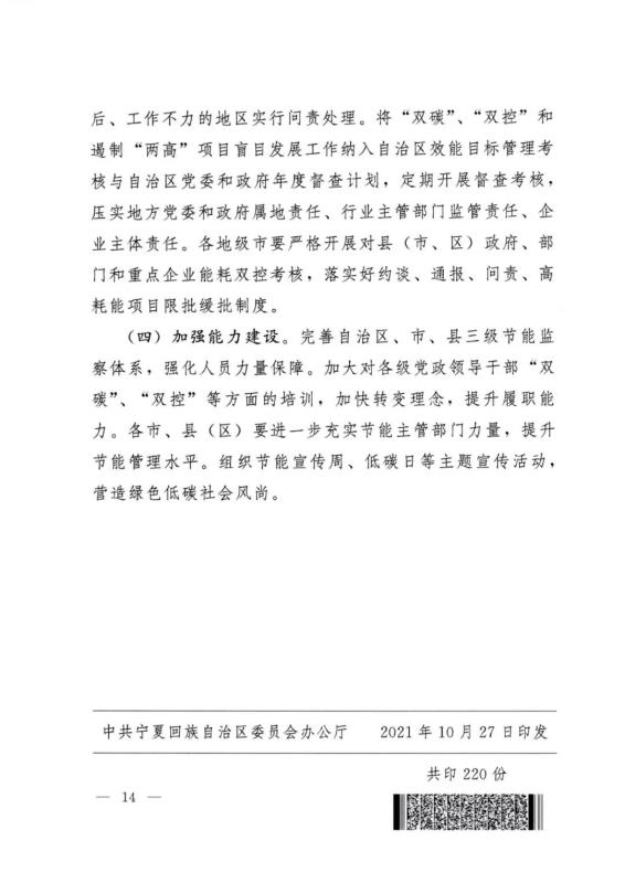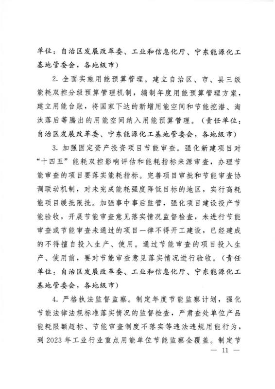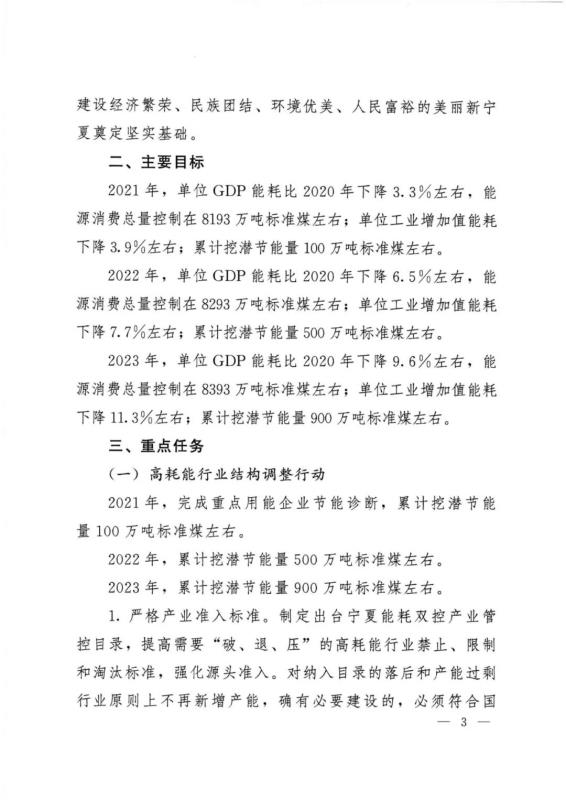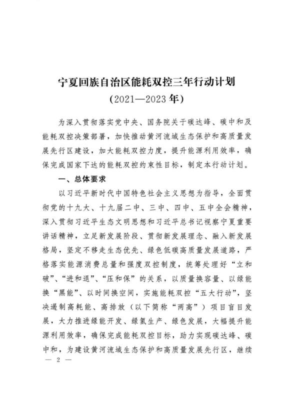 中國(guó)儲(chǔ)能網(wǎng)訊:近日,寧夏回族自治區(qū)黨委辦公廳、人民政府辦公廳發(fā)布關(guān)于印發(fā)《寧夏回族自治區(qū)能耗雙控三年行動(dòng)計(jì)劃(2021—2023年)》的通知。