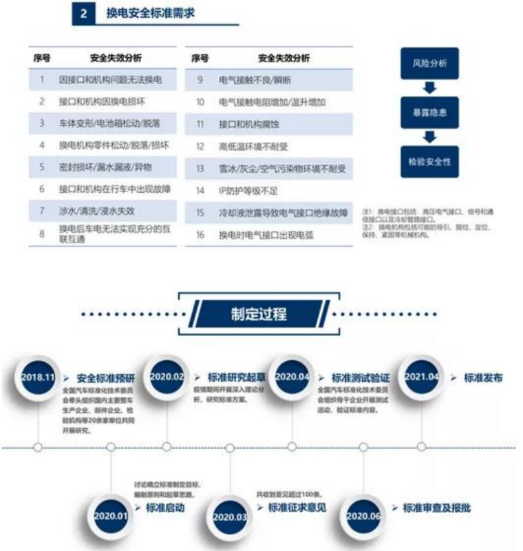 11月1日,GB/T 40032-2021《電動汽車換電安全要求》開始實施。這是我國汽車行業(yè)在換電領(lǐng)域制定的首個基礎(chǔ)通用國家標(biāo)準(zhǔn),有助于提升使用換電技術(shù)的電動車在機(jī)械強(qiáng)度、電氣安全、環(huán)境適應(yīng)性等方面的安全水平,保障換電電動汽車的安全性。
